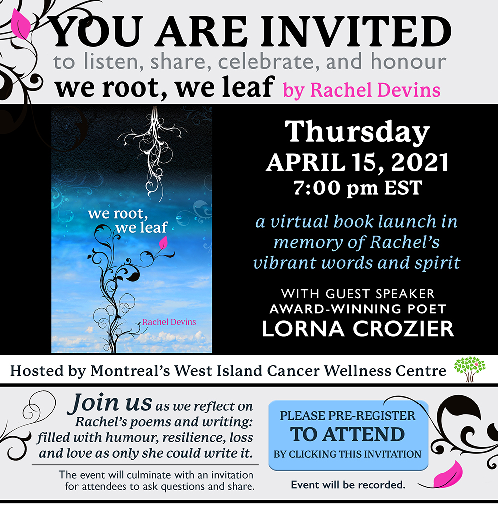 Please join us… bthornborough Uncategorized March 19, 2021March 21, 2021 1 Minute Rachel’s book can be purchased at amazon.ca or amazon.com For more information, contact us at: werootweleaf.info@gmail.com Related Published by bthornborough View all posts by bthornborough Published March 19, 2021March 21, 2021